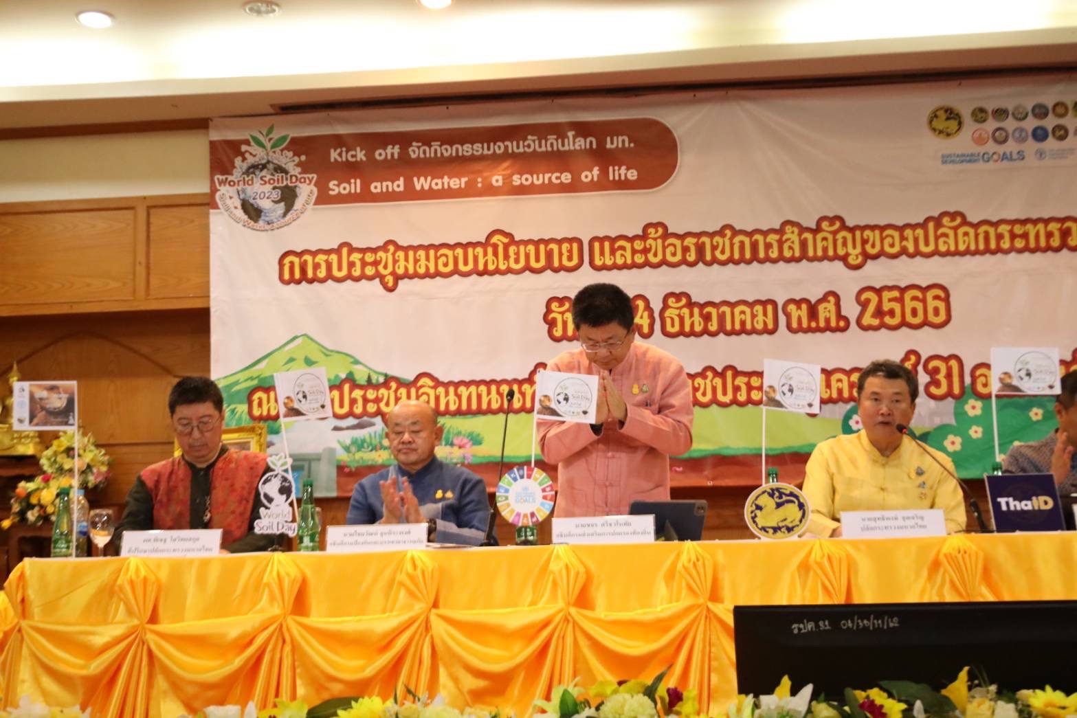 -วันนี้ (15 ธันวาคม 2566) เวลา 08.00 น. Kick off กิจกรรมวันดินโลก ประจำปี 2566 - 2567 ภายใต้แนวคิด "ดินดี น้ำดี ชีวีมีสุข อย่างยั่งยืน : Sustainable Soil and Water for better life ร่วมกับผู้บริหารระดับสูงของกระทรวงมหาดไทยและ ภาคีเครือข่ายในพื้นที่อำเภอแม่แจ่ม จังหวัดเชียงใหม่ กว่า 1,400 คน ณ ที่ว่าการอำเภอแม่แจ่ม จังหวัดเชียงใหม่ ทั้งนี้ องค์การสหประชาชาติ ประกาศรับรองให้วันที่ 5 ธันวาคม ของทุกปี เป็นวันดินโลก เพื่อสดุดีพระเกียรติคุณพระบาทสมเด็จพระบรมชนกาธิเบศร มหาภูมิพลอดุลยเดชมหาราช บรมนาถบพิตร ให้เป็นที่ประจักษ์ถึงวิสัยทัศน์และพระราชกรณียกิจเกี่ยวกับการพัฒนาและอนุรักษ์ทรัพยากรดินอย่างยั่งยืนซึ่งสมัชชาความร่วมมือทรัพยากรดินโลกได้กำหนดหัวข้อหลักการจัดงานวันดินโลก ปี 2566 ว่า "Soil and Water : a source of life ดินดี น้ำสมบูรณ์ เกื้อกูลชีวิต" เน้นความสำคัญของทรัพยากรดินและน้ำที่มีควมสัมพันธ์เชื่อมโยง และเกื้อกูลซึ่งกันและกัน การปกป้องดูแลทรัพยากรดินและน้ำให้มีความยั่งยืนจะช่วยให้เกิดความมั่นคงทางอาหาร ความยั่งยืนของสิ่งแวดล้อมและระบบนิเวศ รวมทั้งคุณภาพชีวิตของมนุษย์และสัตว์
