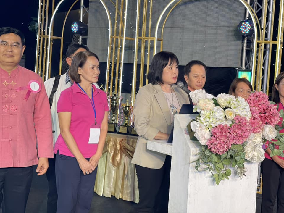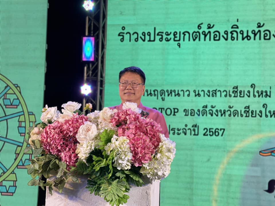 นางทิพรวี รัตนรังสรรค์ ท้องถิ่นจังหวัดเชียงใหม่ กล่าวรายงาน พิธีเปิดการประกวดแข่งขันรำวงประยุกต์ “แม่บ้านท้องถิ่นท้องที่” ในงานฤดูหนาว นางสาวเชียงใหม่ และงาน OTOP ของดีเมืองเชียงใหม่ ประจำปี 2567