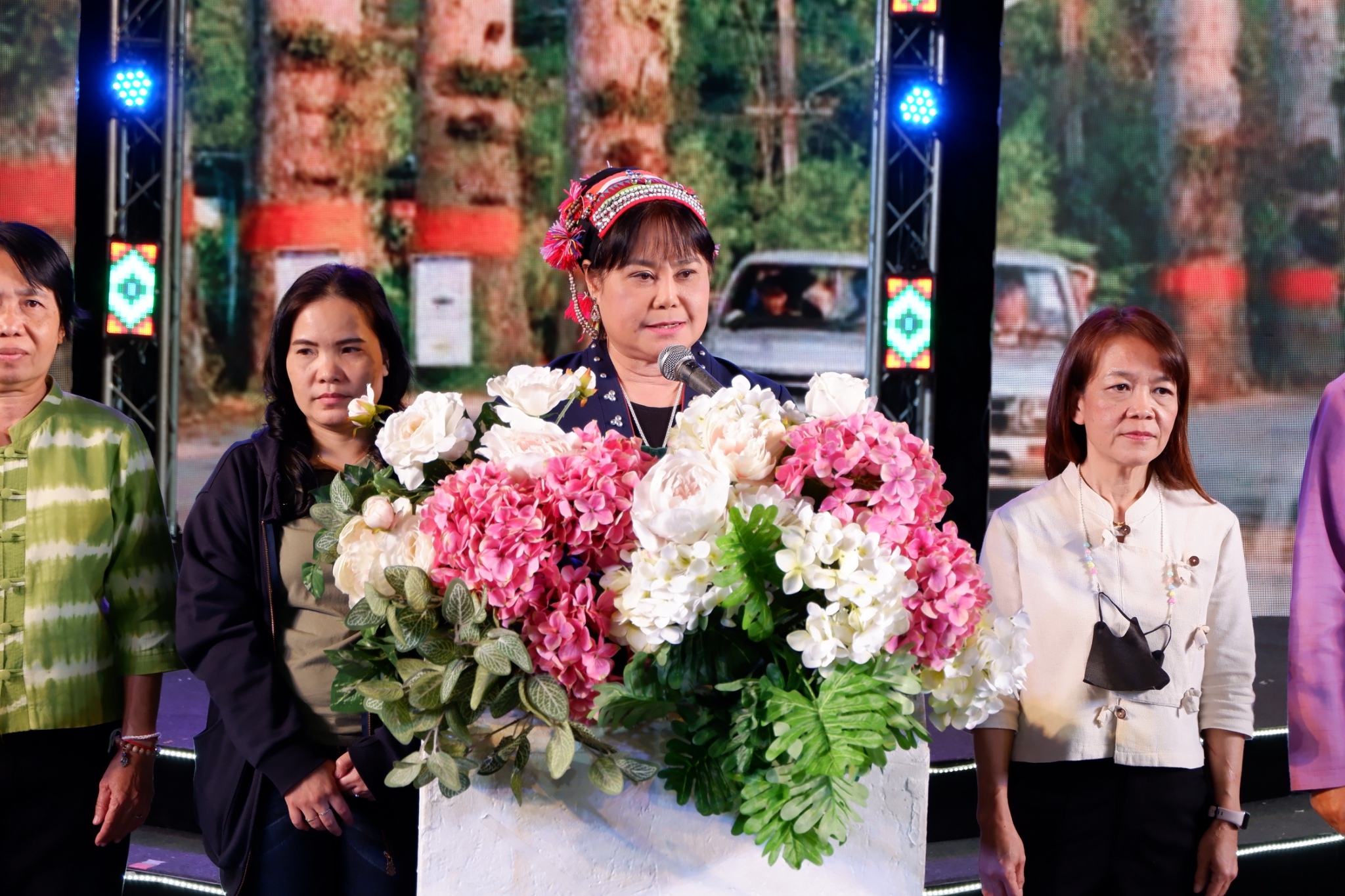 เวลา 19.00 น. นางทิพรวี รัตนรังสรรค์ ท้องถิ่นจังหวัดเชียงใหม่ กล่าวต้อนรับผู้เข้าร่วมแข่งขันรำวงประยุกต์ “แม่บ้านท้องถิ่นท้องที่” ในงานฤดูหนาว นางสาวเชียงใหม่ และงาน OTOP ของดีเมืองเชียงใหม่ ประจำปี 2567