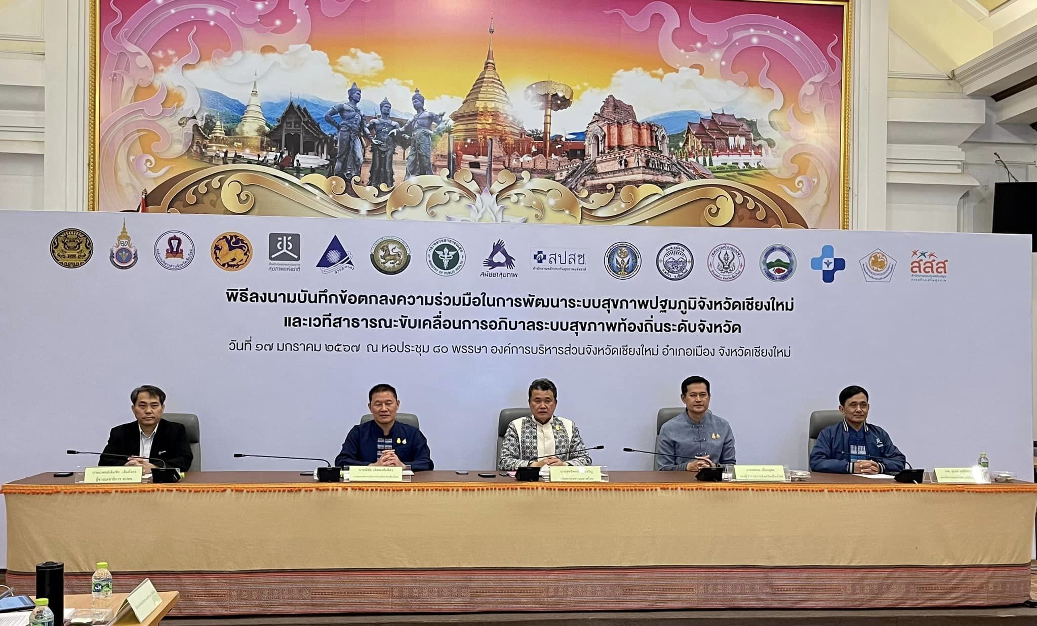จังหวัดเชียงใหม่ ร่วมลงนาม MOU ขับเคลื่อนการพัฒนาระบบสุขภาพปฐมภูมิ พร้อมประกาศเจตนารมณ์ความร่วมมือการอภิบาลระบบสุขภาพท้องถิ่น มุ่งเป้าสู่การเป็นจังหวัดมหานครแห่งสุขภาวะเพื่อความมั่งคั่งและยั่งยืน
