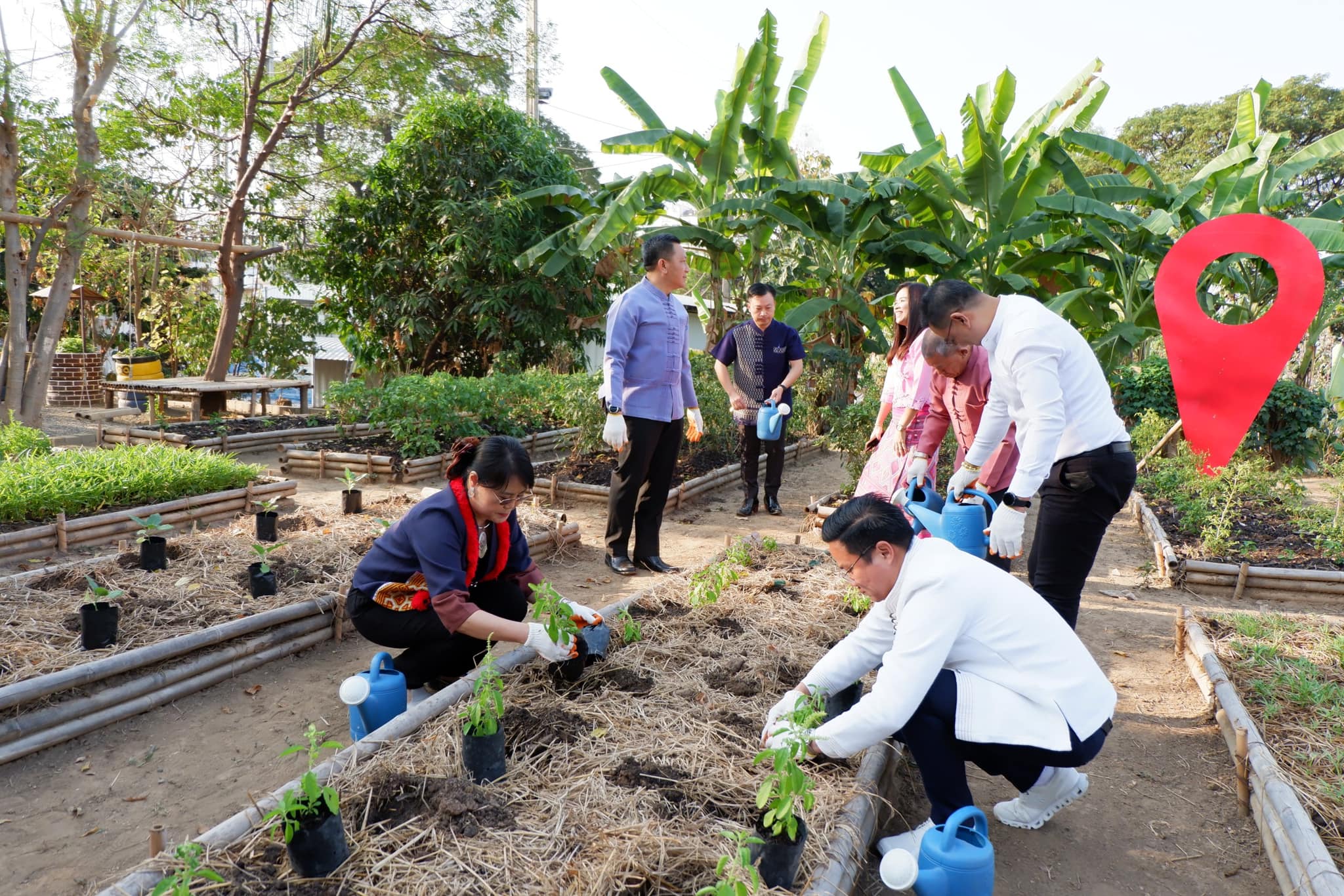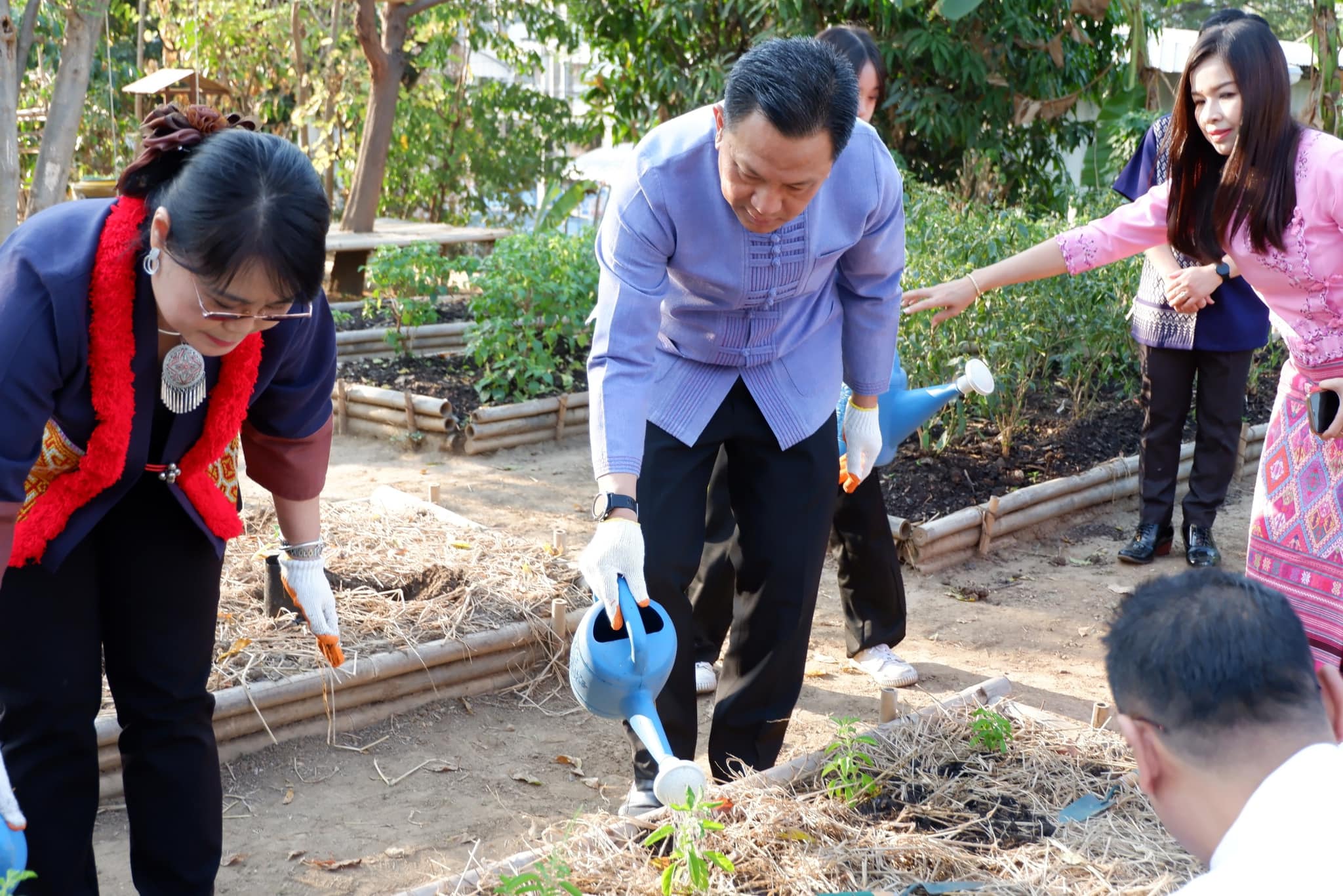 วันที่ 15 กุมภาพันธ์ 2567 นายนิรัตน์ พงษ์สิทธิถาวร ผู้ว่าราชการจังหวัดเชียงใหม่ พร้อมด้วยนางทิพรวี รัตนรังสรรค์ ท้องถิ่นจังหวัดเชียงใหม่ คณะผู้บริหารเทศบาลนครเชียงใหม่ คณะครู – นักเรียนโรงเรียนเทศบาลวัดศรีดอนไชย ผู้อำนวยการกลุ่มงานส่งเสริมและพัฒนาท้องถิ่นและเจ้าหน้าที่ ร่วมปลูกผักสวนครัวตามแนวทางการสร้างความมั่นคงทางอาหารอย่างยั่งยืนในสถานศึกษา โดยน้อมนำแนวพระราชดำริของสมเด็จพระกนิษฐาธิราชเจ้า กรมสมเด็จพระเทพรัตนราชสุดาฯ สยามบรมราชกุมารี ในการปลูกผักสวนครัว สมุนไพรปลอดสารพิษมาใช้ในการสร้างความมั่นคงทางอาหารตลอดจนให้มีการเลี้ยงไก่ไข่หรือปศุสัตว์อื่น เพื่อสนับสนุนให้เด็กปฐมวัย เด็กนักเรียน ได้รับประทานไข่ไก่หรือเนื้อสัตว์หรือมีคุณค่าทางโภชนาการเป็นแหล่งโปรตีนอย่างสม่ำเสมอในราคาถูกและปลอดภัย ณ สวนปลูกผักคนเมือง เทศบาลนครเชียงใหม่ อำเภอเมืองเชียงใหม่ จังหวัดเชียงใหม่